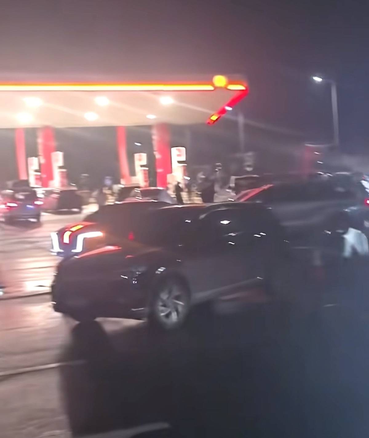 据车主发布的视频显示,2日凌晨,服务区内已聚集多名车主在讨论此事,交警在人群中询问了解最新情况。有车主称,自己已经凌晨补好了胎,开出服务区了,也有车主表示,自己仍在服务区等待事情的进展。