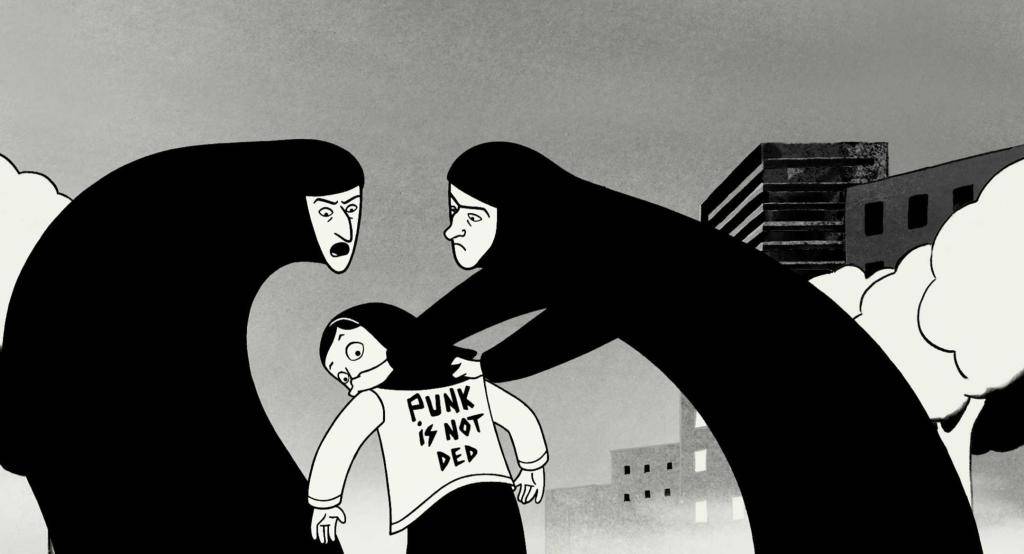 影片改编自伊朗裔法国漫画家玛嘉·莎塔琵的同名自传体绘本,展现时代巨变如何影响个人的命运,从一个女孩的视角审视1979年伊斯兰革命爆发、两伊战争,异国求学,最终选择移居国外的普通伊朗人的心路历程。电影的改编保留了原作以黑白线条勾勒成的版画质感,创造出一种既现代又古典的视觉语言。黑与白,不仅象征着那个时代非黑即白的严酷现实,也让观众更聚焦于故事本身。尽管影片触及革命、战争、死亡、流亡等沉重主题,却始终保持一种举重若轻的语调。这种“笑中带泪”的自嘲口吻,让苦痛得以被讲述,也让伊朗民众秉持的坚韧与希望,显得更加动人。