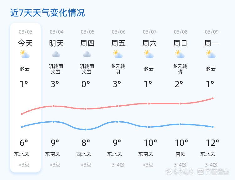 明天3月4日,菏泽市天气将转为阴天并伴有雨夹雪,最高气温将升至9℃,最低气温为3℃,东南风风力仍为小于3级。与今天相比,明天的天气将出现明显变化,市民需注意携带雨具,出行时注意安全。