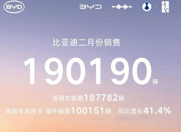 消息面上,比亚迪3月1日发布的2月产销快报显示,比亚迪新能源汽车累计销售约19.02万辆。其中,比亚迪乘用车及皮卡海外销售超10万辆,同比增长41.4%,首次超过国内销量。