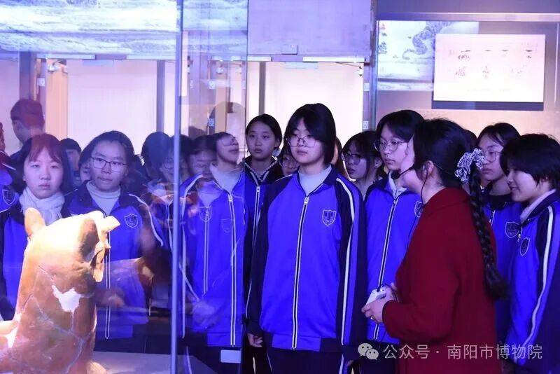 启动仪式后,研学实践环节正式开启。在博物院讲解员的带领下,师生及家长代表们有序走进场馆,近距离感受历史文化的魅力。大家驻足于珍贵文物前,聆听讲解员生动详实的讲解,在一件件承载着岁月印记的文物中,探寻南阳历史的脉络,感受地域文化的深厚底蕴。