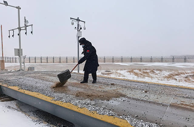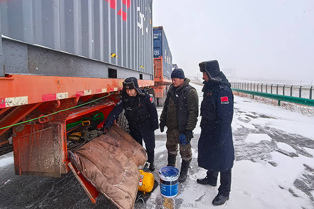 风雪虽大,标准不降。阿日哈沙特边检站全体执勤民警民警以实际行动履职尽责,始终坚守在口岸执勤一线,以扎实有力的工作举措,全力维护口岸安全稳定与通关顺畅。(柳晓龙、马逯)