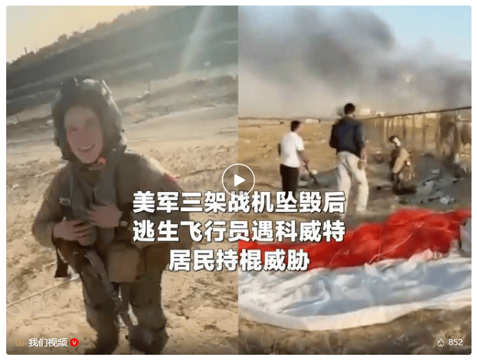 3月2日,三架美军F-15E战机在科威特坠毁后,当地居民与逃生飞行员相遇现场曝光。