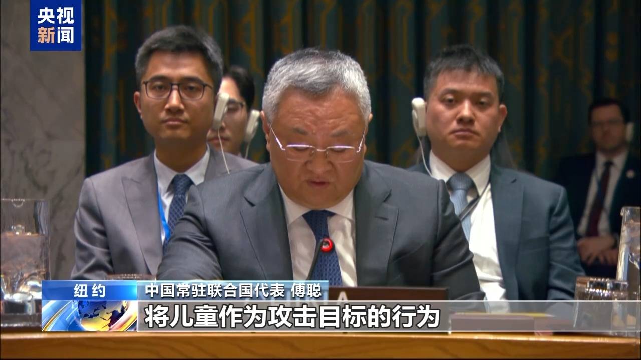 中国常驻联合国代表 傅聪:加强儿童保护是首要任务,中方强烈谴责一切将儿童作为攻击目标的行为。敦促冲突方履行国际人道法义务,保护儿童免受战火侵袭,守住人类最起码的良知底线。袭击学校是联合国认定的六大严重侵害儿童行为之一,应予严厉谴责和坚决抵制。