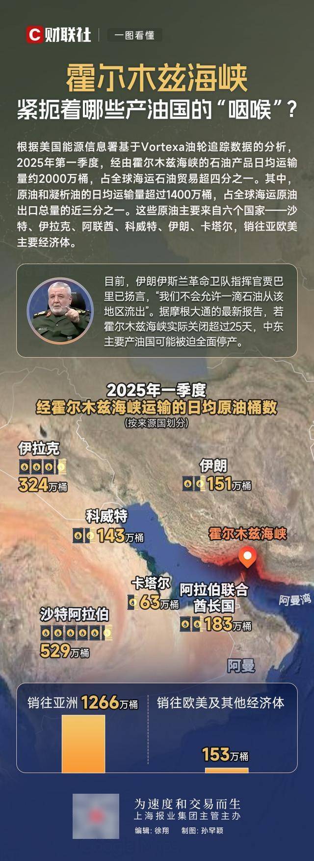 一图看懂:霍尔木兹海峡紧扼着哪些产油国的“咽喉”?