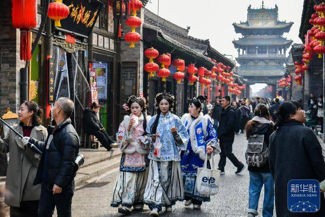 春节元宵节期间,山西太原古县城、平遥古城、榆次老城等景区年味浓郁,吸引游客前来参观游览。