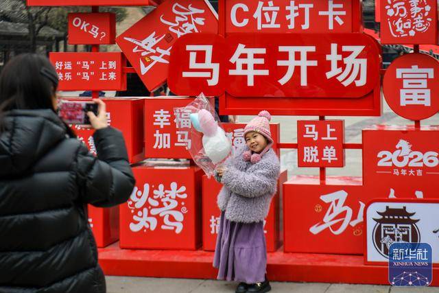 ↑ 2月25日,游客在山西太原古县城拍照留念。