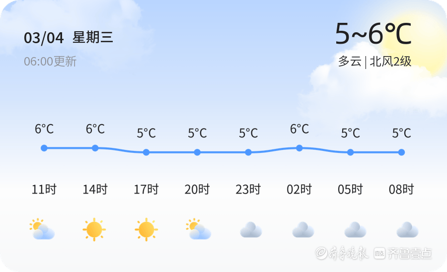 今天是3月4日,星期三,农历正月十六。青岛市今天天气多云,气温介于5℃至6℃之间,北风2级,空气湿度为83%。PM2.5指数为113,属于轻度污染,建议敏感人群减少户外活动。市民出行时请注意保暖,随身携带雨具,以备不时之需。今天的天气总体适宜出行,但空气质量一般,建议市民在户外活动时做好防护措施。未来三天,青岛市天气趋势为多云转阴,气温逐渐回升,最高气温可达7℃,最低气温为2℃。市民需根据天气变化及时增减衣物,尤其在早晚温差较大的情况下,注意保暖防寒。阴天时,路面湿滑,驾车出行的市民应减速慢行,确保行车安全。此外,随着气温回升,市民外出活动时,建议做好防晒措施,尤其是在阳光较强的时段,佩戴太阳镜和涂抹防晒霜,保护皮肤健康。总体来看,未来一周青岛市天气以多云为主,气温逐渐回暖,市民需根据天气变化合理安排出行计划,适时调整衣物,确保身体健康。