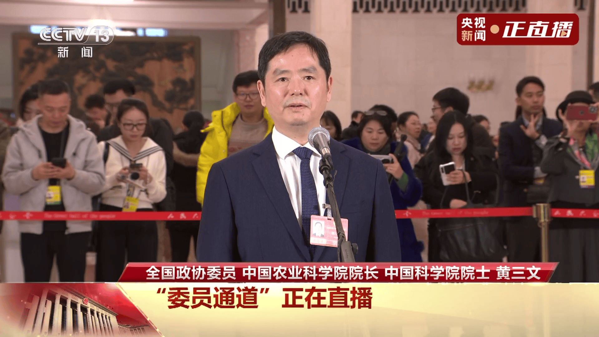 据央视新闻消息,“委员通道”集体采访活动上,全国政协委员、中国农业科学院院长、中国科学院院士黄三文接受了总台记者采访。