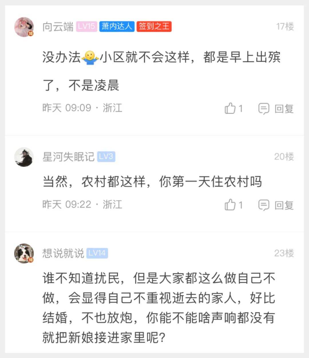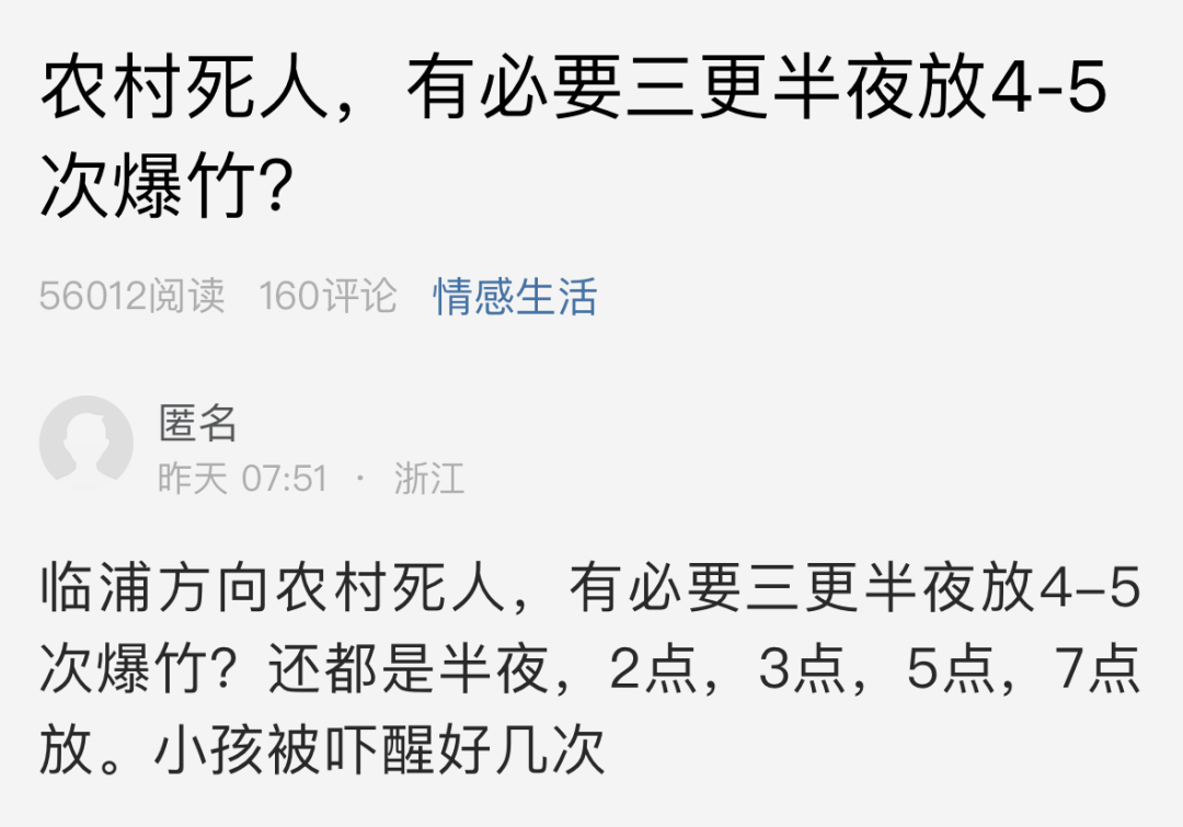 萧山网友:农村有人去世,有必要三更半夜放4-5次爆竹?