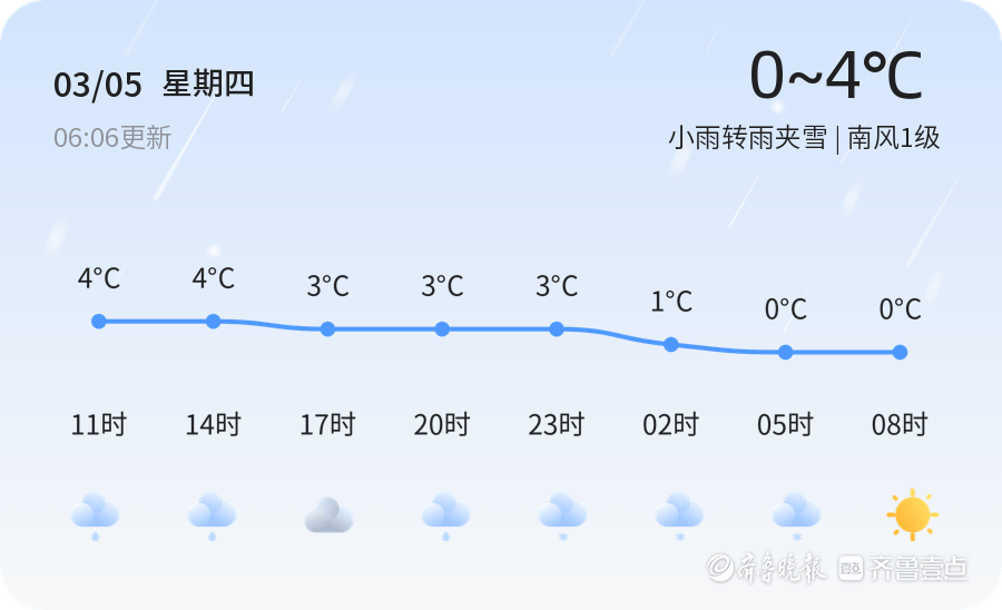今天是2026年3月5日,星期四,农历正月十七,我们迎来了二十四节气中的惊蛰。惊蛰标志着春雷始鸣,蛰虫初醒,万物复苏。然而,今天的威海天气却不那么‘春意盎然’,预计全天小雨转雨夹雪,气温在0℃至4℃之间,南风1级,空气湿度为68%,PM2.5浓度为46,空气质量为优。市民朋友们在享受惊蛰时节的生机勃勃的同时,也要注意防范雨雪天气带来的不便。惊蛰时节,气温波动较大,市民应适时增减衣物,谨防感冒。未来三天,威海的天气将以阴雨为主,气温较低,市民需做好防寒保暖措施。具体来看,3月6日,多云转晴,气温在-1℃至1℃之间,西北风4-5级;3月7日,晴,气温在-1℃至2℃之间,北风3-4级;3月8日,阴转多云,气温在2℃至8℃之间,北风3-4级。提醒市民注意防范大风天气,出行时远离广告牌等易坠落物品,确保安全。温馨提示