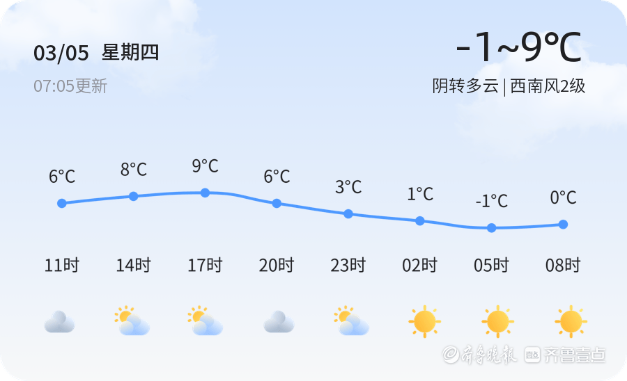 未来三天,泰安天气以多云为主,气温波动较大,最高气温可达11°C,最低气温为-3°C。其中,3月8日天气转晴,3月9日为多云转阴,风力有所增强。市民需注意天气变化,及时增添衣物,防范感冒。