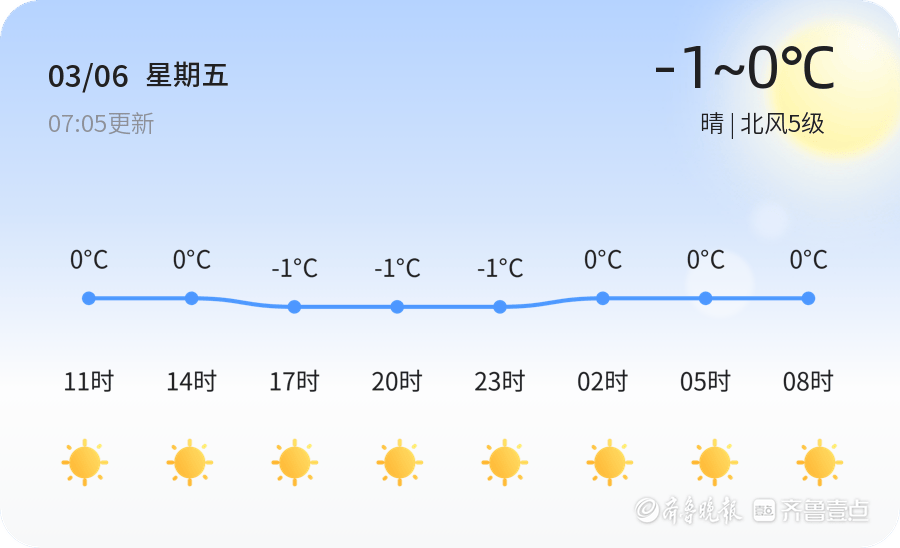 今天是2026年3月6日,星期五,农历正月十八。烟台市迎来晴好天气,气温在-1℃到0℃之间,北风5级,空气湿度66%。空气质量状况为优(PM2.5为30)。今天的天气适合户外活动,但由于风力较大,市民出行时请注意防风保暖,避免受凉。