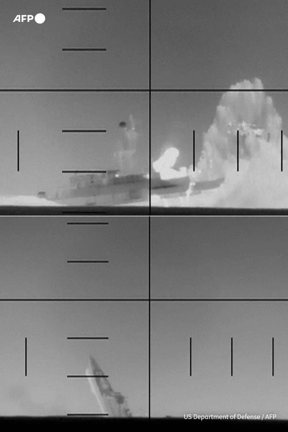 美国五角大楼还公布了黑白影像,显示一枚鱼雷击中舰船,激起巨大水柱。美国潜艇应该远远看着,没有任何的营救活动。