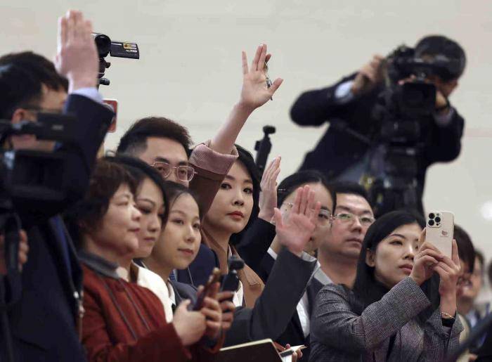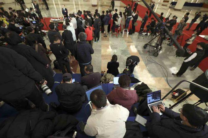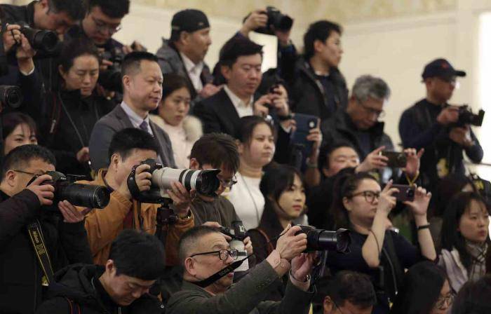 在部长通道采访的记者。