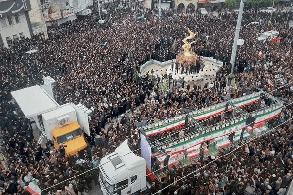 同一天,伊朗国家电视台播放了这所女子学校遇难者的葬礼画面,这些遇难女孩们的小棺材上覆盖着伊朗国旗,由卡车运送,穿过熙熙攘攘的人群,最终抵达墓地。