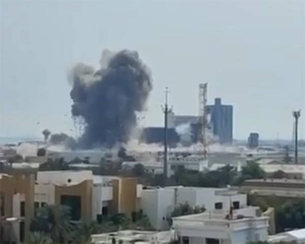 美国驻巴林大使馆遭袭后,浓烟滚滚。视频截图