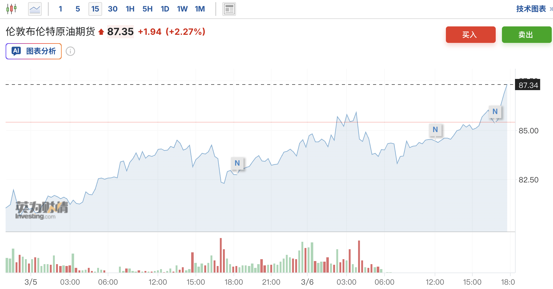 中东战事升级正将全球能源供应体系推向临界点。3月6日下午,卡塔尔能源部长发出迄今最为严峻的警告:若战争持续数周,海湾地区各能源出口国将被迫全面停产,全球经济将受到深远冲击。受此影响,布伦特原油快速上涨,截至发稿,报价87.4美元。