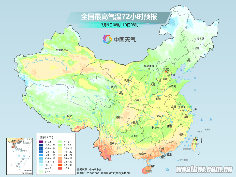 8日夜间到9日白天,多云转晴,偏南风转偏北风3~4级阵风5~6级,气温2~12℃;