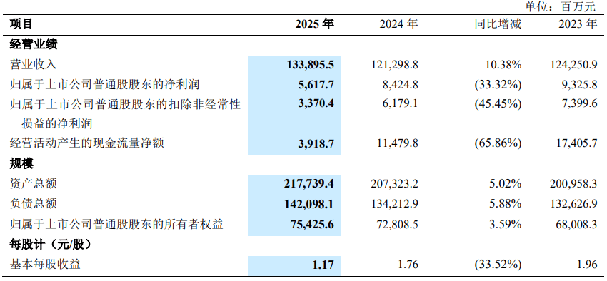 【大河财立方消息】3月6日,中兴通讯发布2025年度报告,公司实现营业收入1338.96亿元,同比增长10.38%;归属于上市公司普通股股东的净利润为56.18亿元,同比下降33.32%。公司计划以分红派息股权登记日股本总数为基数,向全体股东每10股派发4.11元人民币现金(含税)。