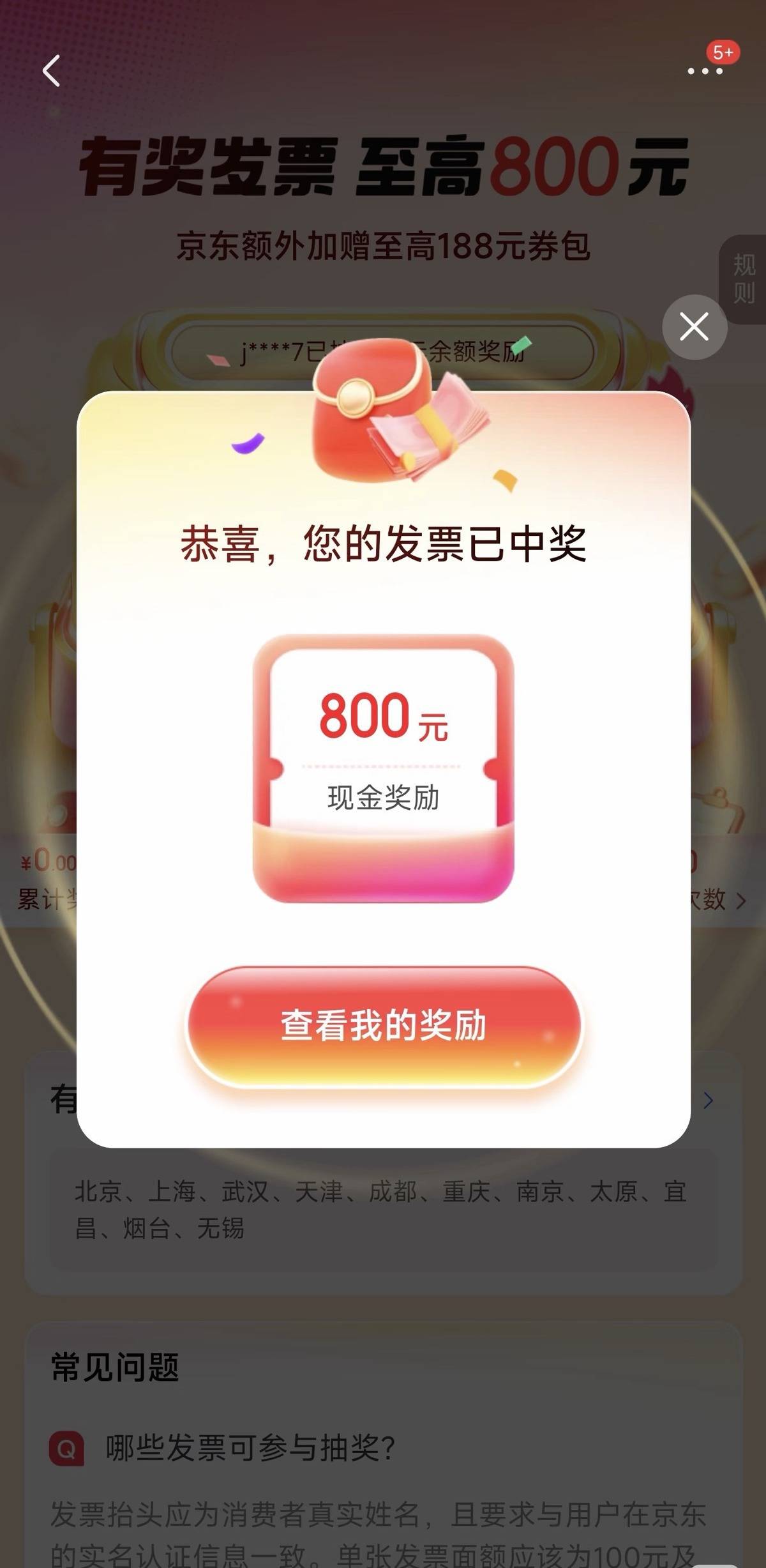 记者注意到,不少用户在社交平台分享购买三八节节日礼物后发票中奖的经历。有用户在京东3.8节参加试用频道的请客活动抽中百元试用钻石,凭相关发票参与抽奖后再次中得800元奖励。