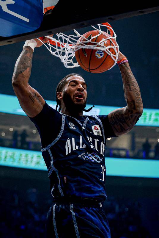 次节迪亚洛再度暴扣,北区明星队反超比分。徐昕完成空接扣篮,两队战成46平。迪亚洛左侧底角投进三分,徐杰外线2记三分还以颜色。南区明星队领先9分,此时北区明星队连进3记三分缩小分差。洛夫顿完成大风车扣篮,双方又战成64平。迪亚洛爆发连进2记高难度三分,紧接着南区明星队连进三分。上半场结束,南区明星队85-82领先北区明星队。前两节迪亚洛拿下22分。