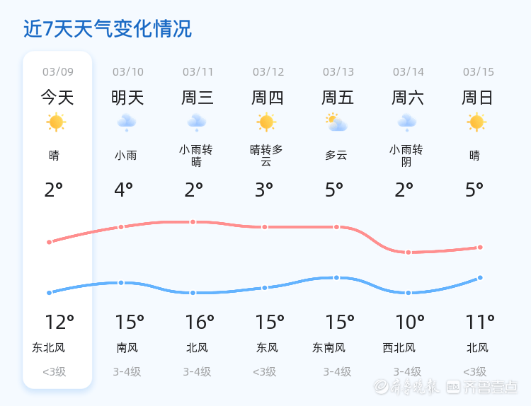 今天是2026年3月9日,星期一,农历正月廿一。济宁市迎来晴朗天气,气温在2℃至12℃之间,西北风1级,空气湿度较高,PM2.5指数为132。全市各区天气情况一致,均为晴朗天气,适合市民户外活动。