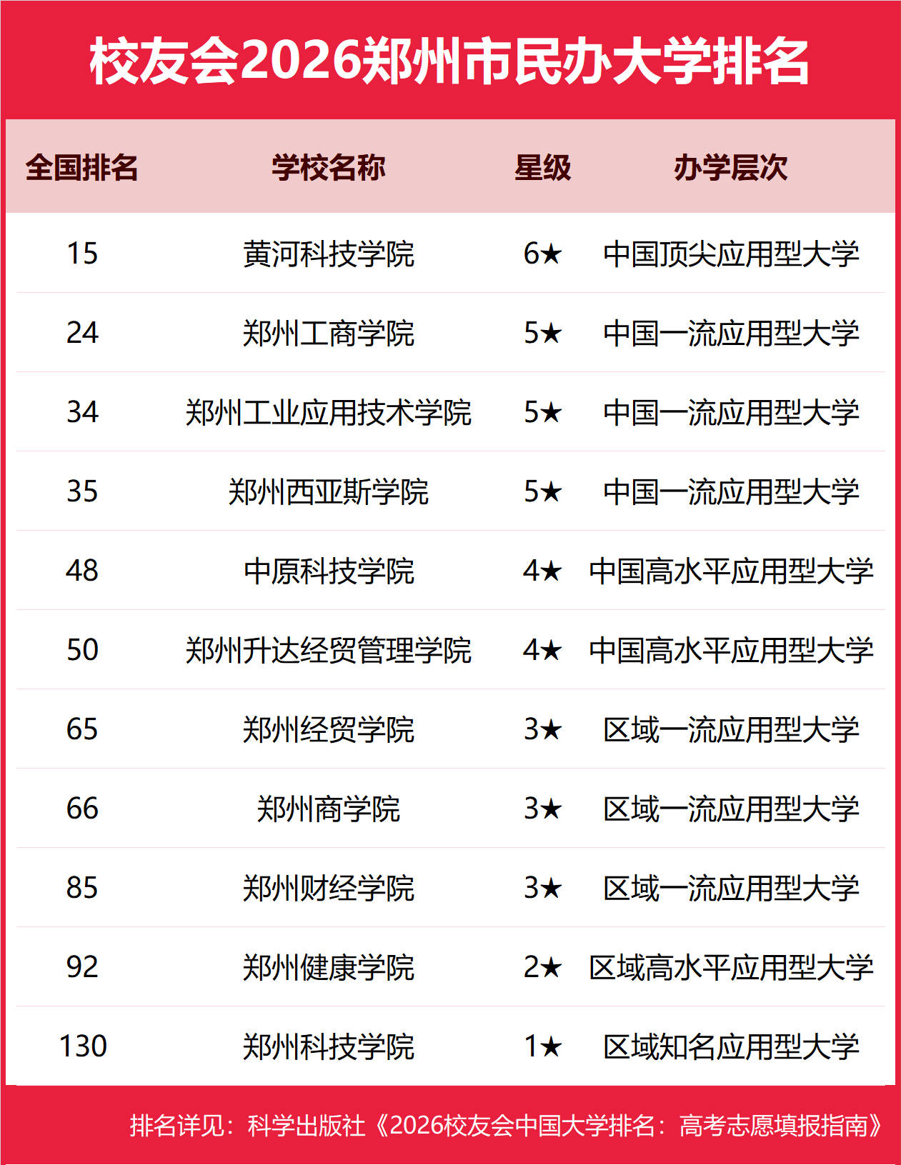 校友会2026郑州市民办大学排名,黄河科技学院第一,郑州工商学院、郑州工业应用技术学院前三