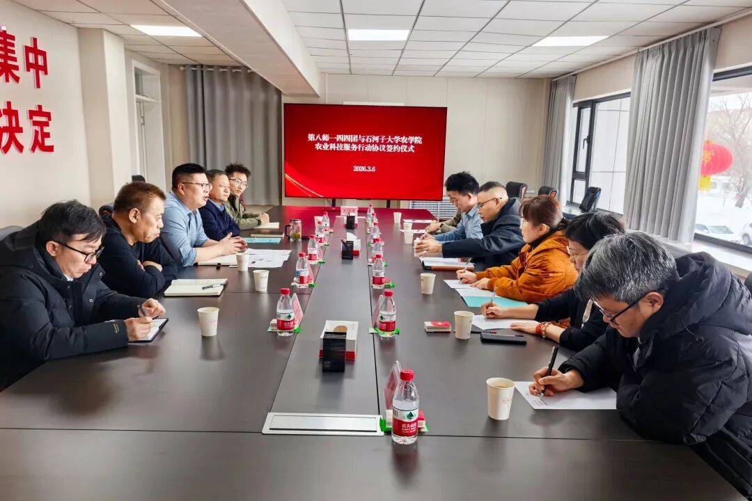 3月6日,144团与石河子大学农学院举行农业科技服务协议签约仪式。双方本着“服务三农、优势互补、资源共享、开放融合、协同创新、绿色发展”的原则,建立全方位一体化合作关系,搭建农业科技服务合作平台,以科技之力助推团场农业高质量发展,为团场“十五五”开局起步注入强劲科技动能。