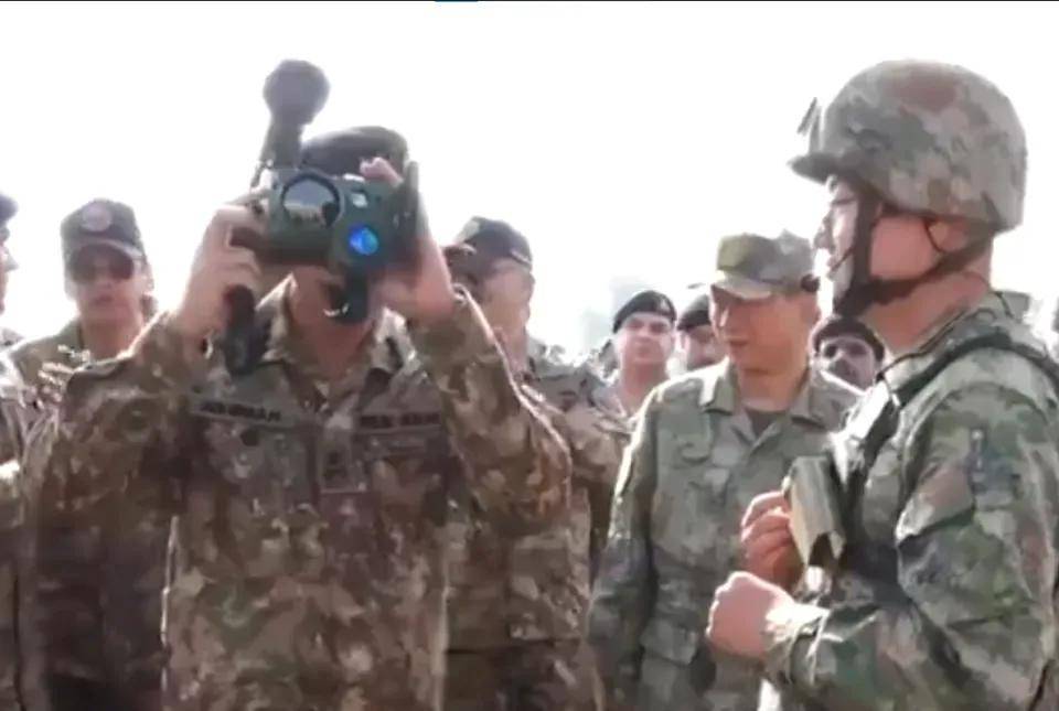 ▲我军战士向巴基斯坦军官展示微型单兵导弹