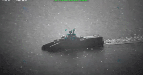 ▲苏莱曼尼级导弹舰在被美军击中瞬间,发射出最后一枚导弹