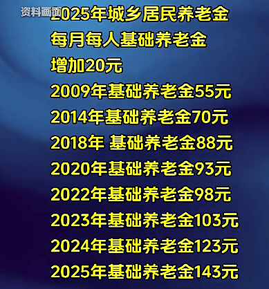 从2009年国家确定的最低居民养老金标准每人每月55元提高至2023年的103元,14年增长了48元。2024年、2025年先后增长20元,最低基础养老金提至143元,今年继续增加20元。城乡居民基础养老金已连续3年每月涨20元,3年涨幅超过此前14年增额。