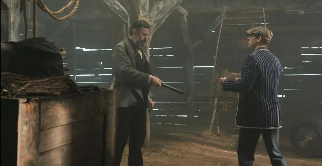 他和莫里亚蒂迅速展开调查,顺着破碎的窗玻璃、河岸边的废弃小船、歪斜的马车车辙,一路追到偏僻的驿站,锁定了一名神情可疑的大胡子乐师。