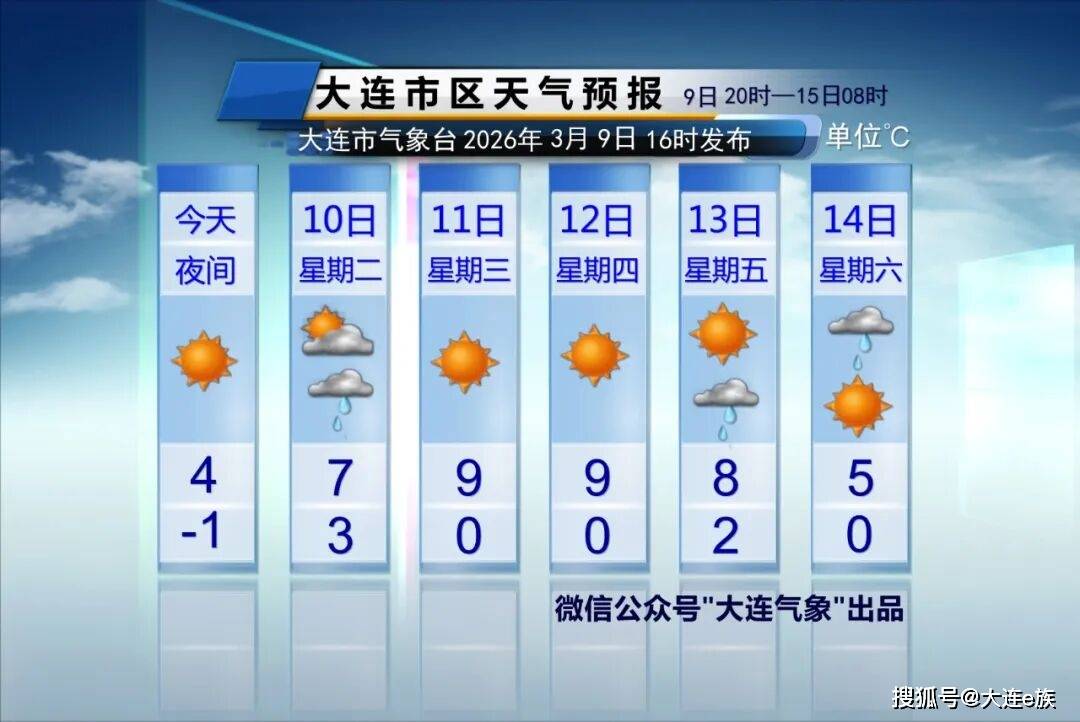西部沿海西南风5到6级10日8时前后转偏南风6级、阵风7级,南部沿海、东部沿海偏北风5到6级转偏南风5到6级,大连市各县市区偏北风4到5级转偏南风5到6级。
