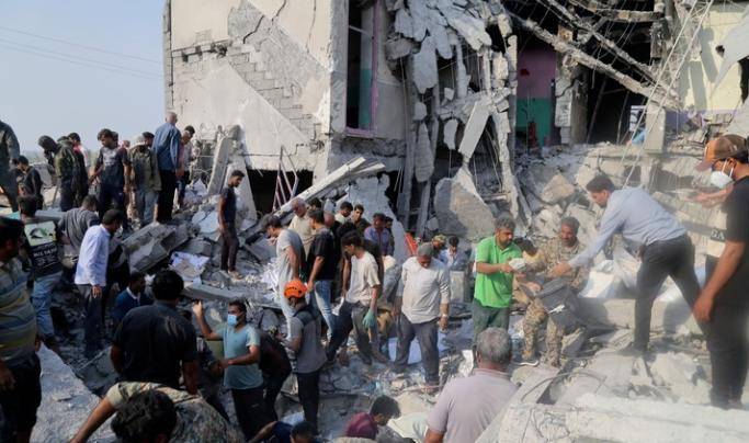 被导弹击中的学校(图片来源:新华国际)