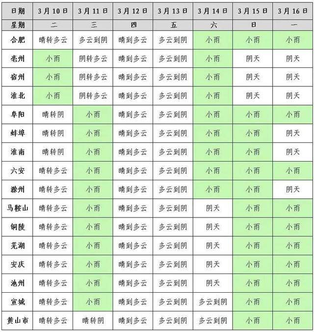 11日:淮河以北阴天转多云;沿淮淮河以南多云到阴天,大部分地区有小雨。