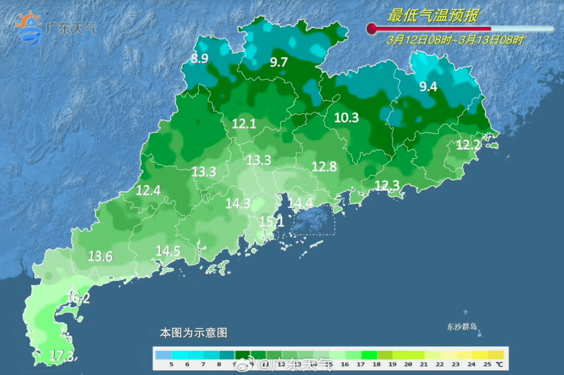 广东最低气温预报。