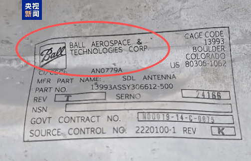 △导弹残片上标有美企“Ball公司”