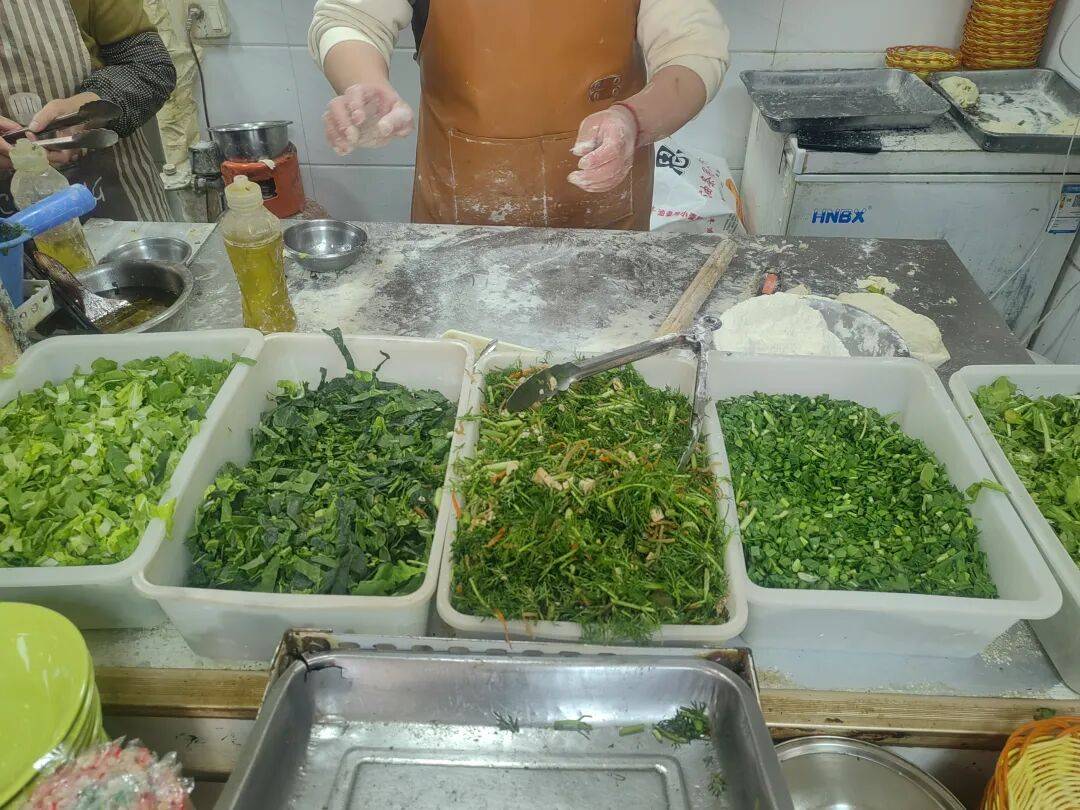 价格表右侧是一小伙子主管的天下,现做现卖的葱花油馍和菜馍,想吃啥点啥,食材很新鲜,重点是追随时令,什么季节吃什么菜,一点也不含糊,透明厨房,看得见的食品一安全: