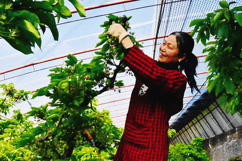 “白天在棚里干活挣钱,晚上回家给老人孩子做口热乎饭,美得很!”阎小宁一边麻利地整理着枝条,一边乐呵呵地跟记者唠着。如今,塬畔村樱桃产业带动周边用工300人以上,人均年增收2万元,大樱桃、食用菌、花卉、蔬菜、鸡蛋等农特产品远近闻名,特色农家乐独树一帜,成为大家休闲游玩、健身采购的热门目的地,“家家有致富产业,人人有增收门路”在村里成为现实。