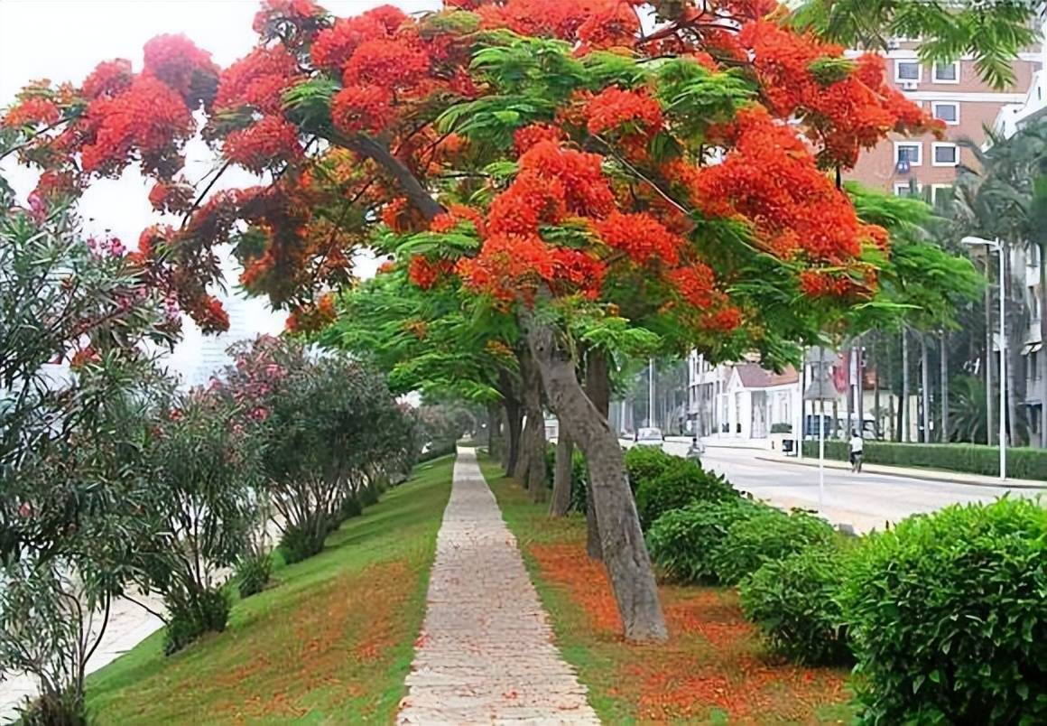 正是由于凤凰木这种独特而迷人的外观,它成为了全球闻名的观赏性植物。无论是在公园、街道还是庭院中,凤凰木都以其艳丽的色彩和优雅的姿态,为环境增添了一抹亮丽的风景线。许多城市都将凤凰木作为行道树进行种植,每当花开时节,道路两旁就像是铺上了一层红色的地毯,吸引着众多游客驻足观赏、拍照留念。