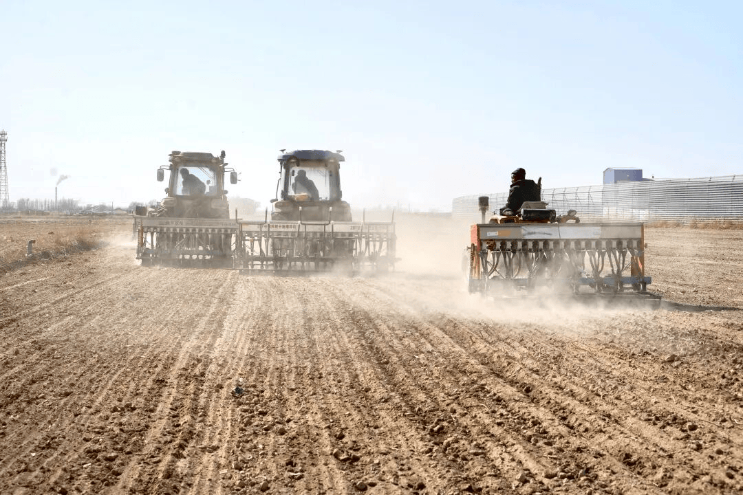 3月7日,内蒙古巴彦淖尔市临河区干召庙镇新丰村5000亩连片玉米套小麦订单种植春播工作正式拉开帷幕。农机往来穿梭隆隆作响,农户们抢抓农时、辛勤耕耘,全面开启新一年的小麦播种作业。