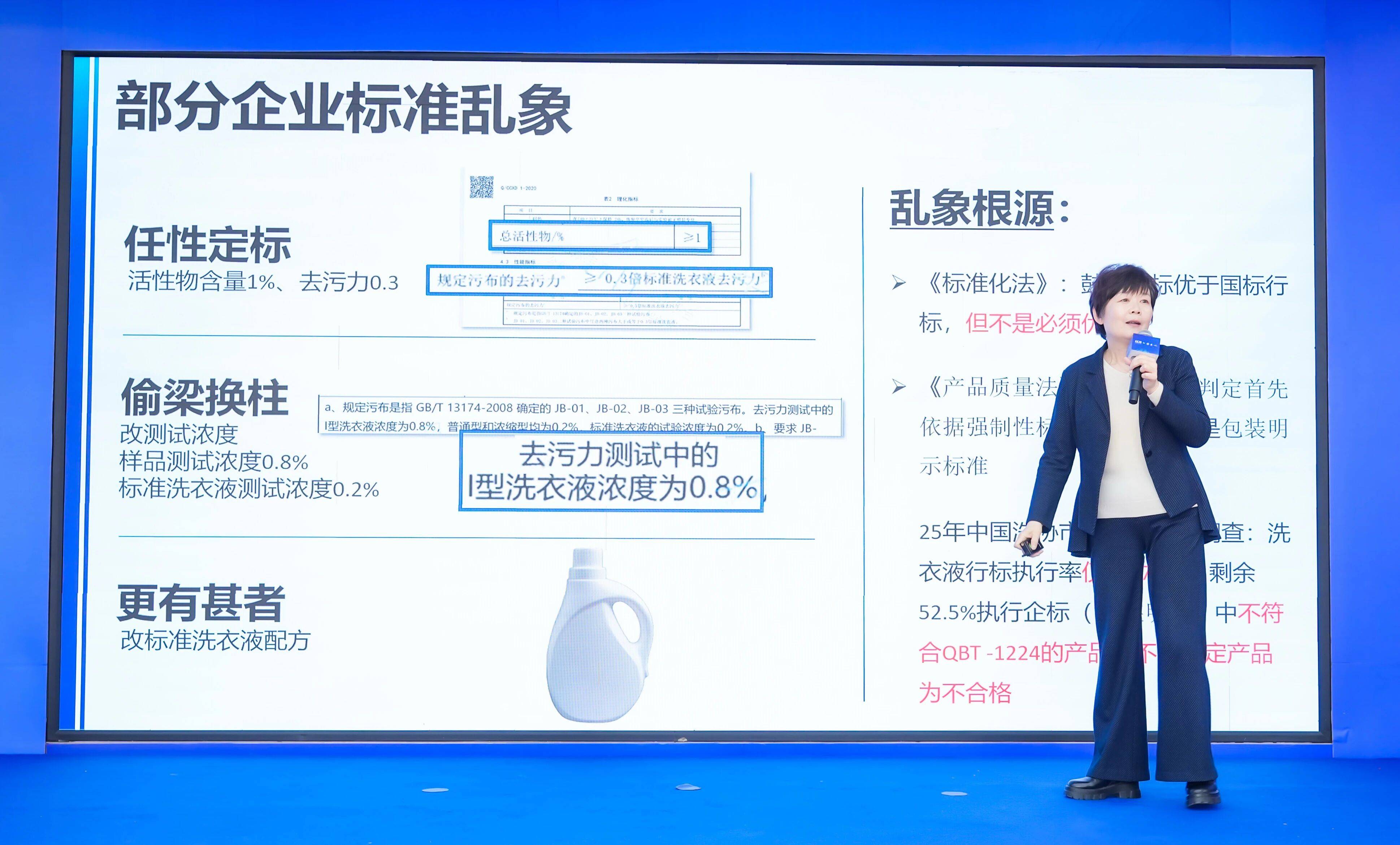本意是鼓励企业拔高产品质量,却被部分企业玩成了“标准游戏”——将总活性物含量、去污力等关键指标定得远低于行业推荐值,从而造出一个极易通过的“合格证”。比如,抽检中某款实测总活性物含量2%的洗衣液,企业标准中赫然写着“总活性物含量≥1.5%即为合格”。中国洗涤用品工业协会理事长汪敏燕直言:“企业标准定得过低,本质上是对消费者不负责任。”