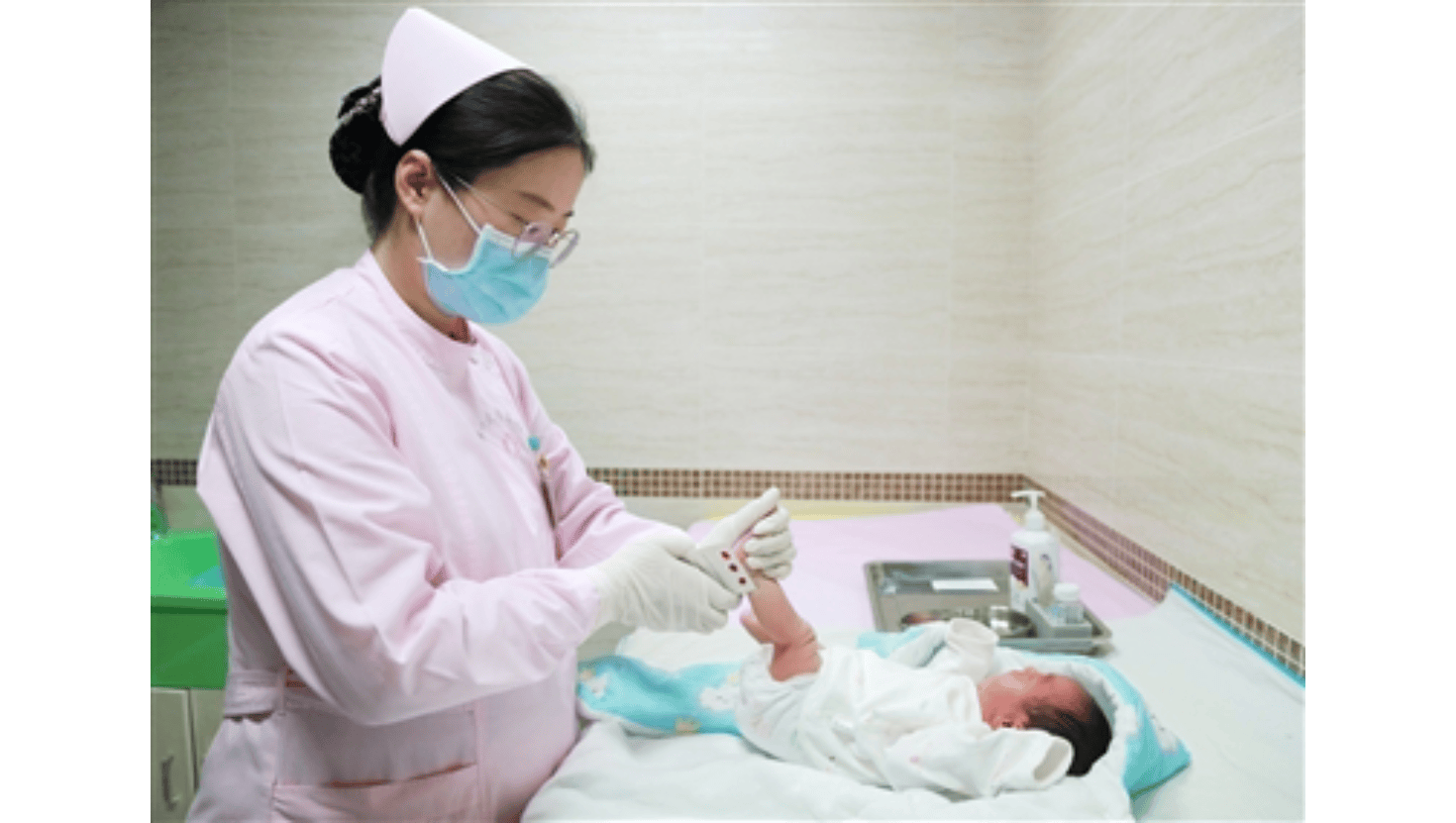 省妇幼保健院医护人员正在为新生儿采足底血,进行新生儿疾病筛查。 何剑烁 摄