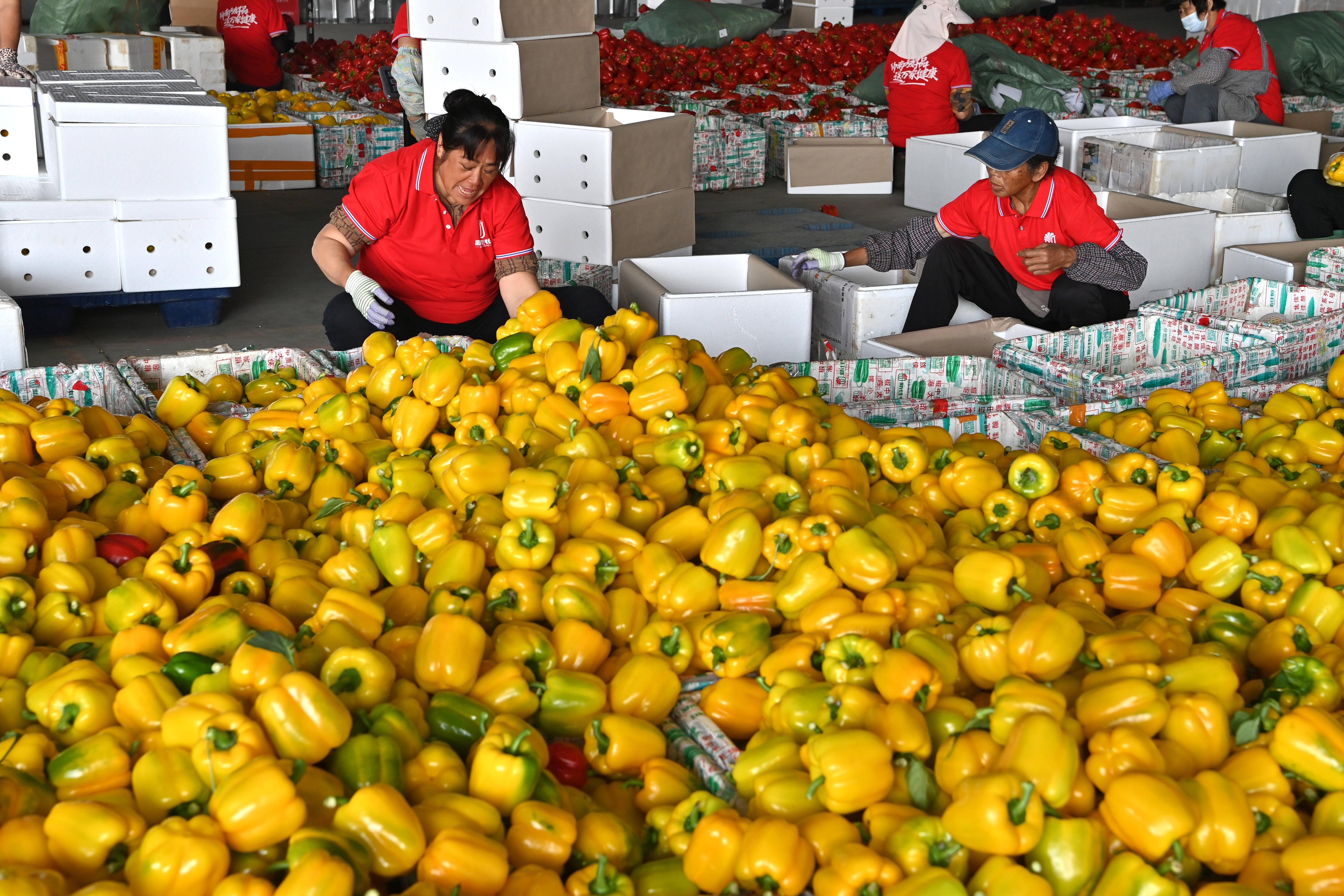 3月12日,工人在广西合浦县沙岗镇北海新佳恒农业技术服务有限公司设施蔬菜种植基地给彩椒装箱。 新华社记者 周华 摄