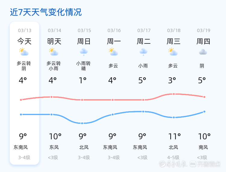 明日,3月14日,日照市天气将转为多云转小雨,气温略有上升,最低气温4℃,最高气温10℃。与今日相比,明日将有小雨天气,风力略有增加,东南风3-4级,市民出行需携带雨具,注意交通安全。