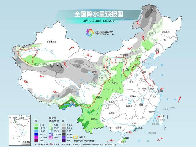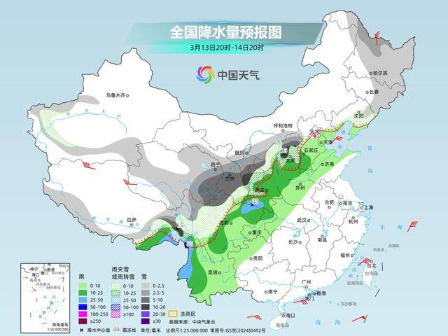 同时,雨雪伴随着大风降温天气,部分地区还将出现雨雪相态转换,道路湿滑、结冰风险高,大家外出应谨慎慢行,驾车出行尽量避开积雪和结冰路段。