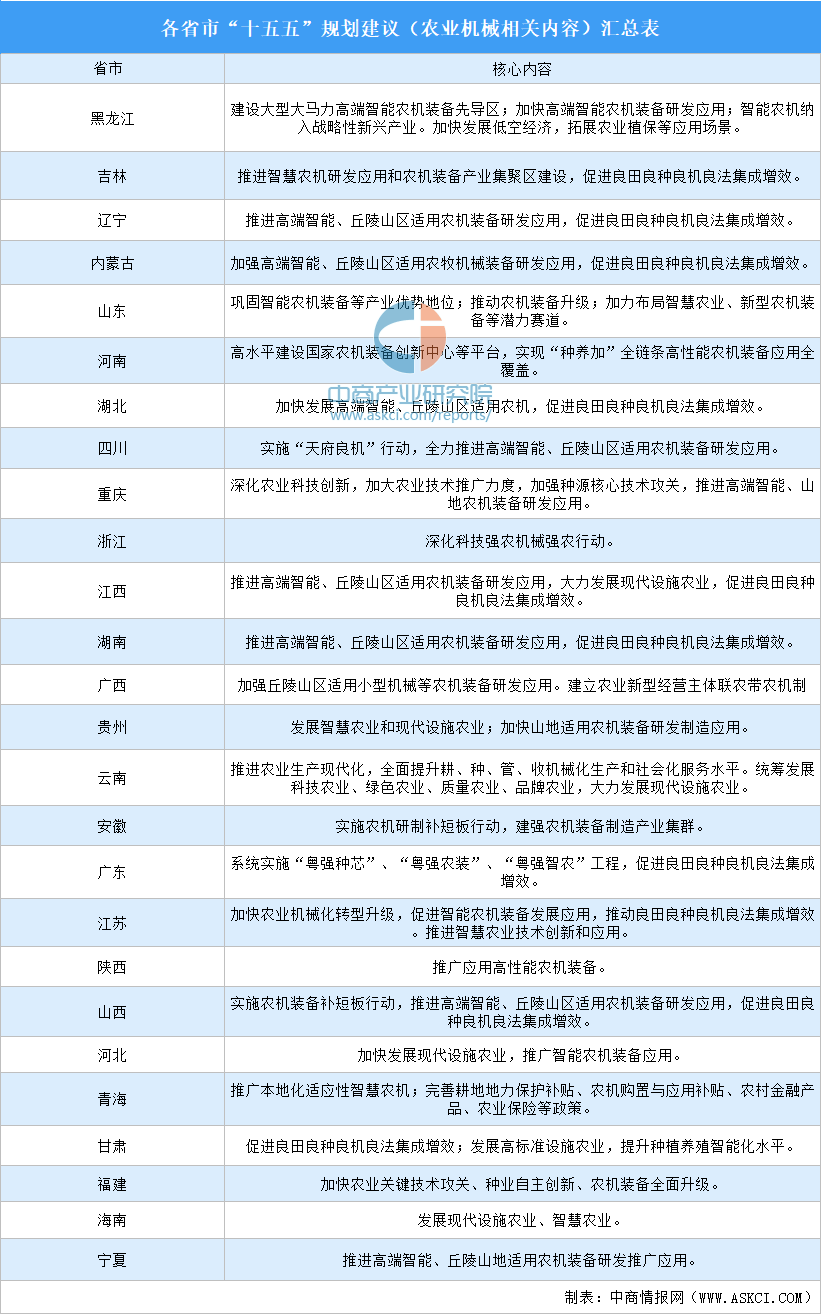 中商情报网讯:农业机械化作为发展现代农业、保障粮食安全、全面推进乡村振兴的关键支撑,正迎来新的战略机遇期。中国“十五五”规划建议提出,推进高端智能、丘陵山区适用农机装备研发应用,促进良田良种良机良法集成增效。黑龙江、吉林、湖北、湖南等多个省市明确提出,要“促进良田良种良机良法集成增效”。