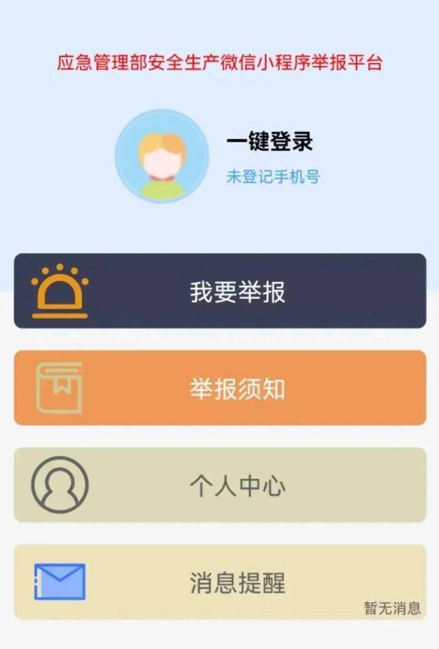 扫描下方“应急管理部安全生产举报”微信小程序二维码,点击【一键登录】登记手机,点击【我要举报】阅读举报须知后进入信息填写页面,即可填写举报内容,在【个人中心】可以查看举报记录和受理情况。