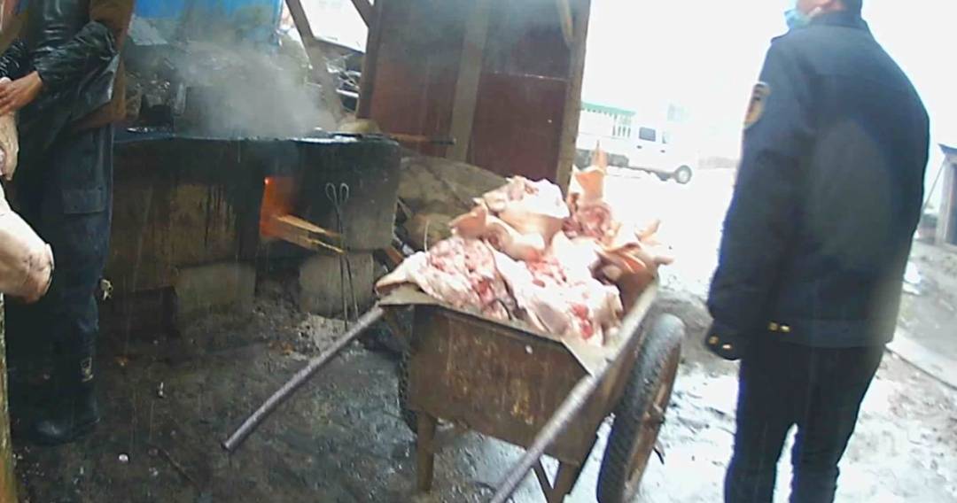 2025年1月10日,盘州市市场监管局执法人员根据举报线索到盘州市某食品加工厂开展核查。执法人员现场检查发现有待加工、已脱毛、已加工为成品的猪头肉等共计5800余斤及当事人用于脱毛的助焊剂松香块、防滑松香粉、高纯度松香块、高密度蜡共计10余千克、以及使用铁锅熬制的液体融化松香。